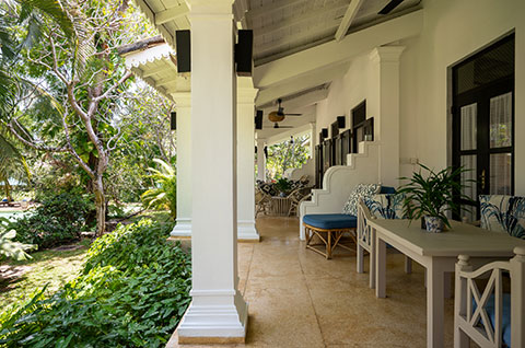 Our third room in the house is a large double which also contains an additional child’s bed/day bed and has an-suite bathroom with walk in shower. The private veranda looks out over the lush garden at the back of the house and allows for easy wheelchair access.